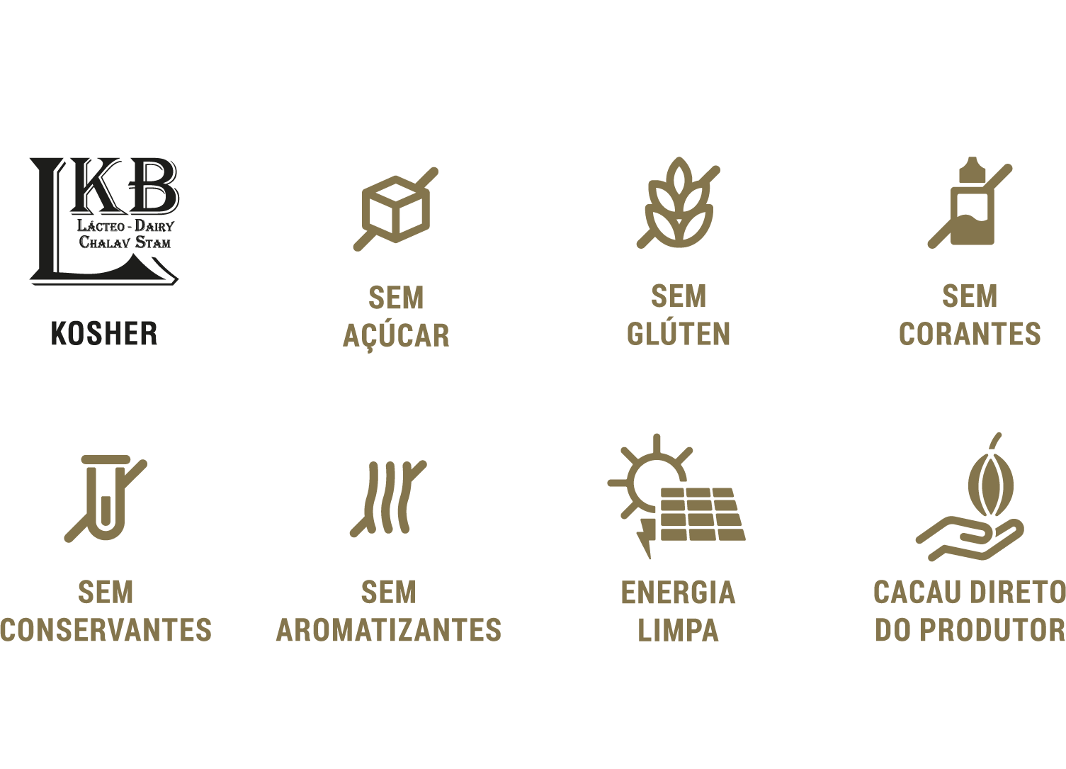Em sua formulação apenas ingredientes naturais, sem corantes, conservantes ou aromatizantes artificiais. Produto sem glúten, sem soja e livre de gorduras trans. Não contém glicose, sacarose e frutose.